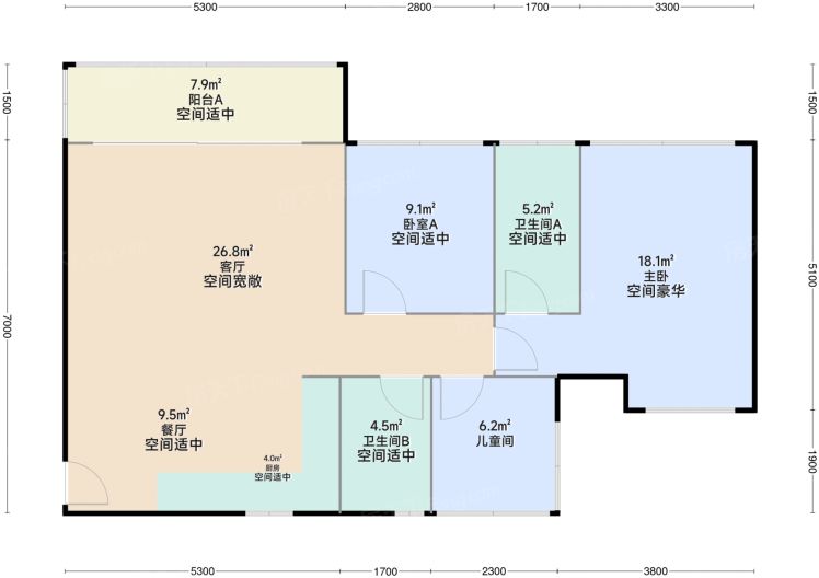 3室2厅2卫 建面 约100平
