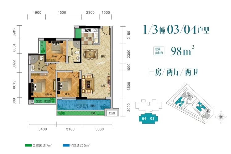3室2厅2卫 建面 约98平